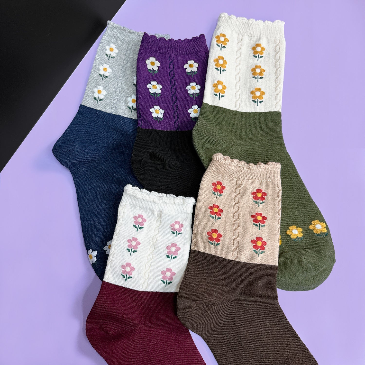 Women's Picot Flower Pattern Crew Socks - 5 PK
