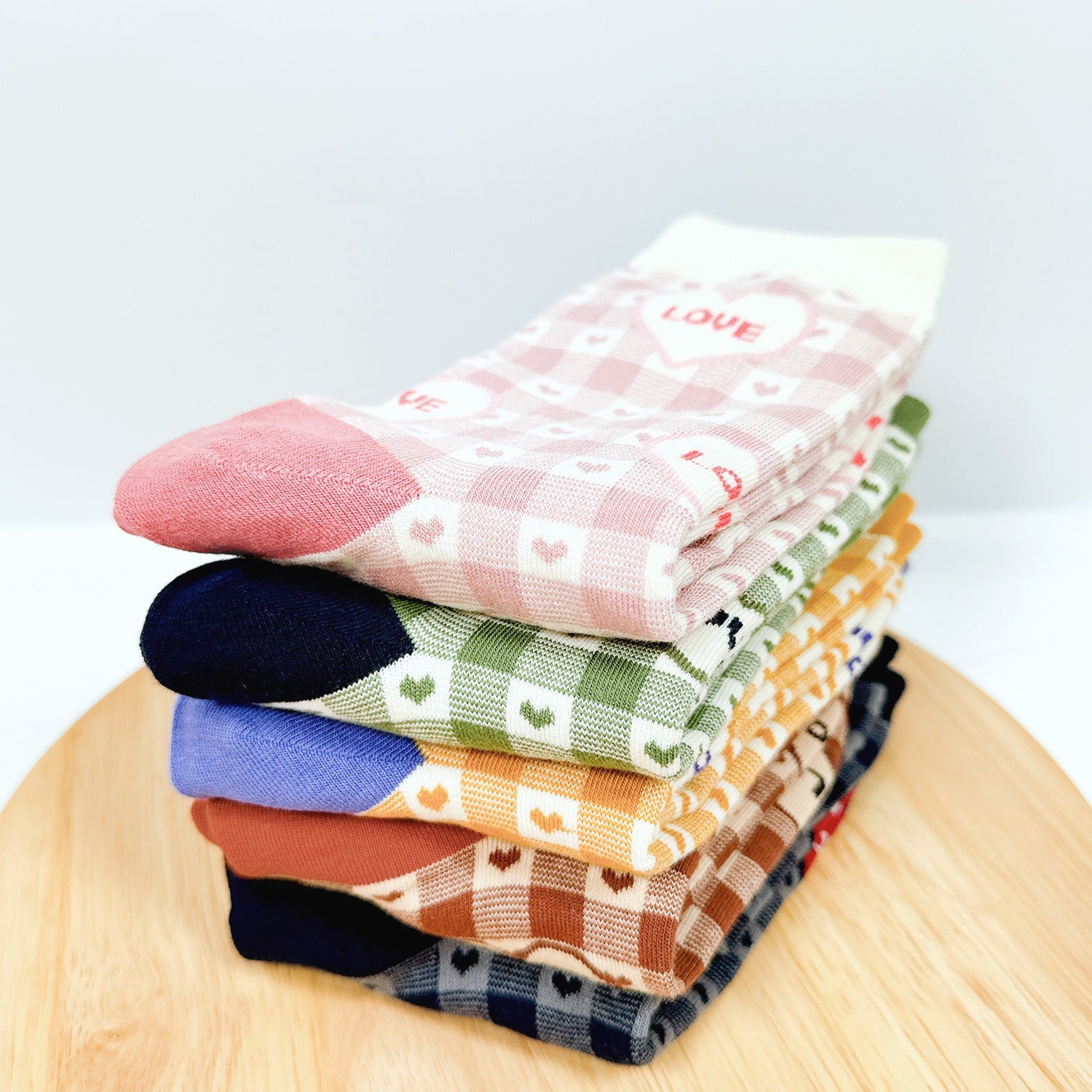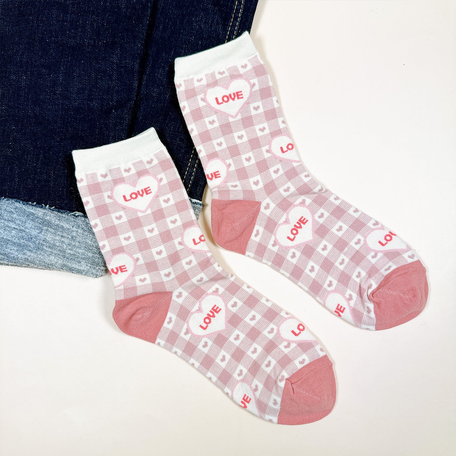 Women's Heart & Check Pattern Crew Socks - 5 PK